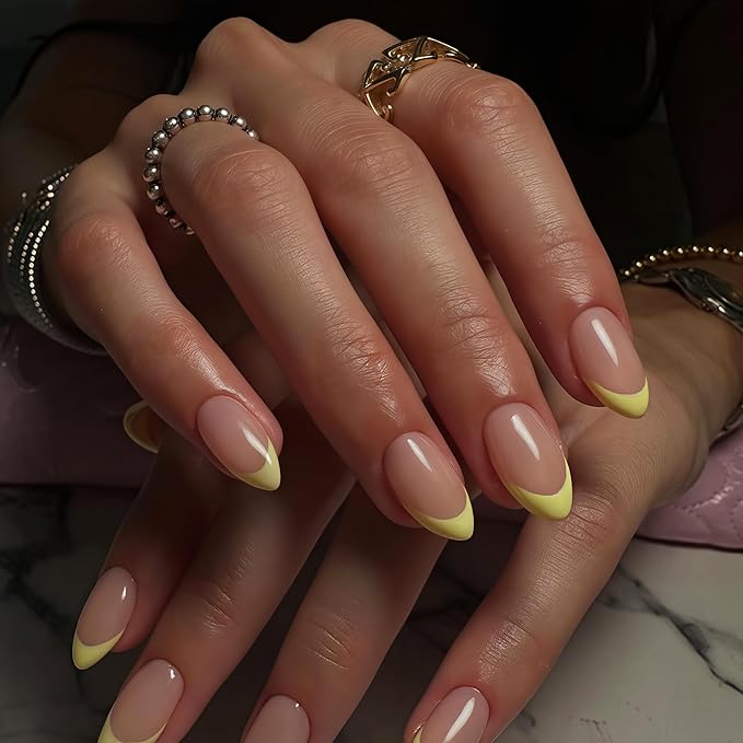 - Beauty in Every Fingertip: Yellow French press on nails almond suitable for various social occasions great for nails salon, DIY home nails art. Perfect to be used on wedding, working, prom, dating, and medium length press on nails almond also suitable for Valentine's, Mother's Day and other festival
