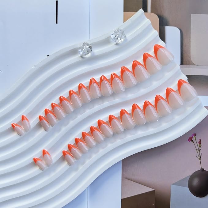 - Beauty in Every Fingertip: Orange French press on nails almond suitable for various social occasions great for nails salon, DIY home nails art. Perfect to be used on wedding, working, prom, dating, and medium length press on nails almond also suitable for Valentine's, Mother's Day and other festival