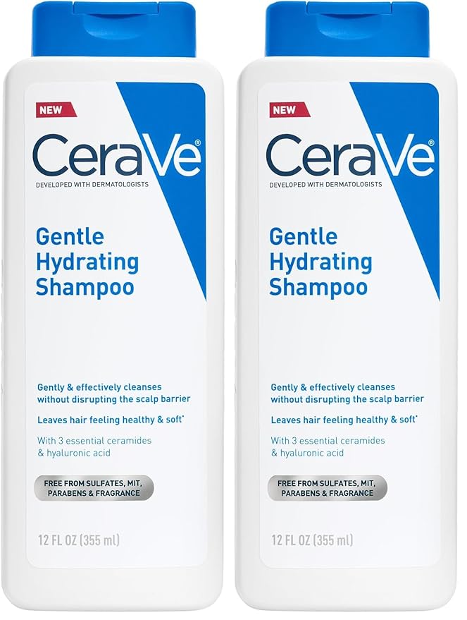 CeraVe Gentle Hydrating Shampoo, With Ceramides, Niacinamide & Hyaluronic Acid For Soft, Healthy Looking Hair & Scalp, Sulfate Free & Color Safe Shampoo, For All Hair Types, 12 Oz (Pack of 2)