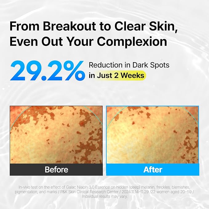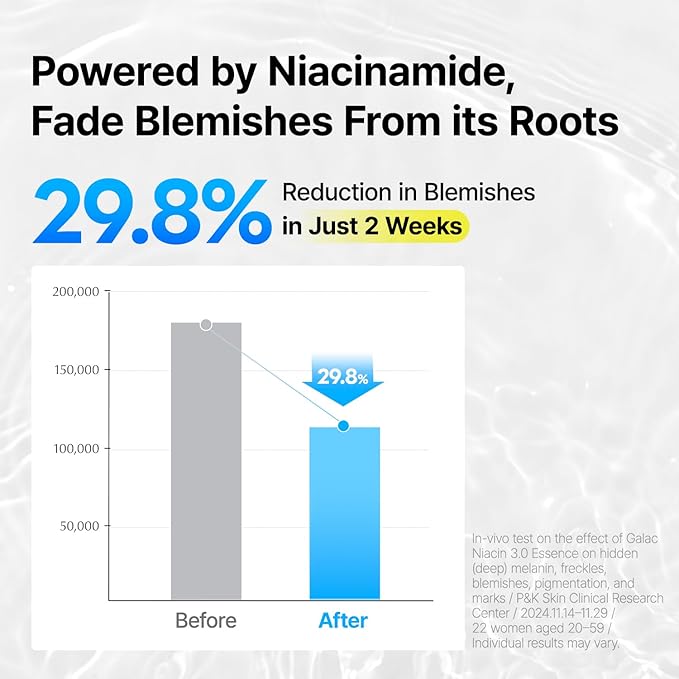 - [Clinically Tested] Blemishes reduced by 29.8% & 15.8% improvement in hyperpigmentation in just 2 weeks