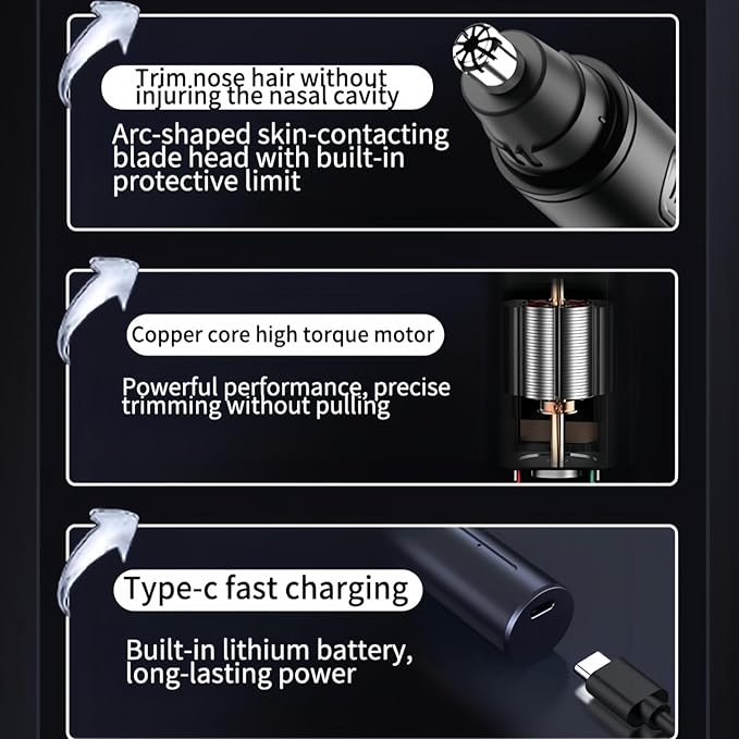 - Powerful Copper Core Motor & Painless: Allergy-resistant stainless steel nose hair trimmer features an upgraded copper-core motor, delivering power to the 360° rotating dual-blade system with a premium 9,000 RPM motor. Designed to snugly fit the nasal cavity, it avoids pulling or damaging nose hair. Enhanced allergy resistance ensures a safer and more comfortable trimming experience.