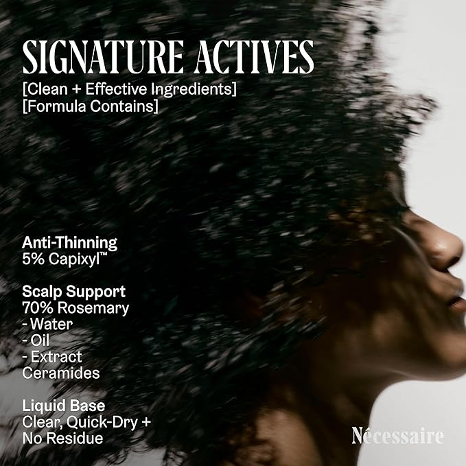 Nécessaire Rosemary Serum | For Denser, Fuller, Healthier Looking Hair Women & Men | 70% Rosemary Water, Oil, Extract + 5% Capixyl™| Good For Hair Thinning | Quick-Dry, No Residue | Vegan | 1 fl oz