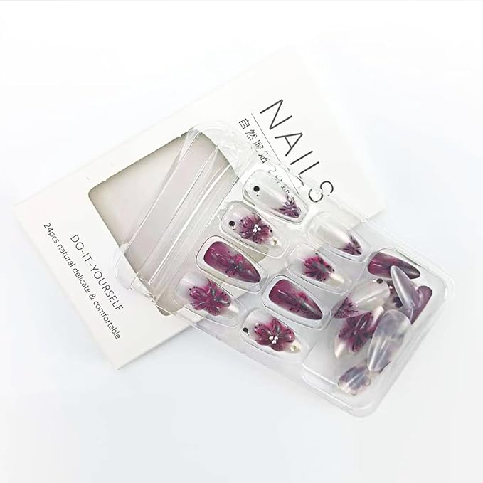 - Easy to use:After trimming and cleaning your nails,you only need to choose the purple floral false nails ,stick the jelly glue we provide, press the false nails on the jelly glue for 30 seconds to get your favorite nail are