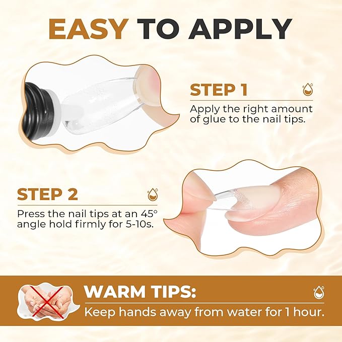- Instant Curing Formula---Using this nail tips glue, it cures easily in just 10 seconds without the need for UV/LED lighting, ideal for fast manicures or nail repairs.