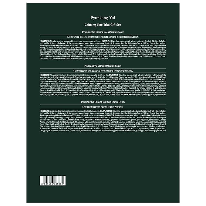 Pyunkang Yul PKY Calming Trial Gift Set, Exfoliating Toner, Soothing Serum, and Facial Skin Hydrating Cream, Vegan, Korean Skincare (3-item set) Stocking Stuffer Christmas Holiday New Year gift set