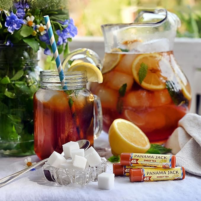 Panama Jack Sunscreen Lip Balm - SPF 45, Broad Spectrum UVA-UVB Sunscreen Protection, Prevents & Soothes Dry, Chapped Lips, Sweet Tea, 3-pack