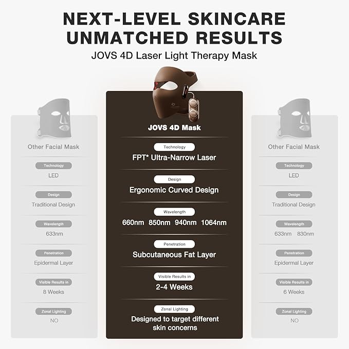 JOVS 4D Laser Light Therapy Mask, Red Light Therapy Mask for Face with FPT Technology, 4 Long Light Waves for Deep Anti-Aging and Wrinkle Reduction, 6× More Powerful than LED Laser Tech