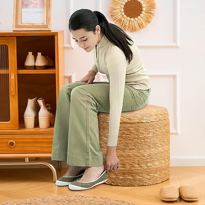 Wimarsbon 18'' Ottoman Pouf, Natural Braided Poof, Rustic Handweave Lounge Pouffe, Boho Footrest Stool for Bedroom, Accent Table for Living Room (Storage - 18inch Natural Cattail L)