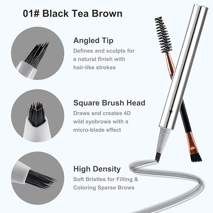 - Water-Proof & Long-Lasting: Our liquid eyebrow pencil with high pigmentation, smooth application, defined lines and fast drying, no smudging or fading.
