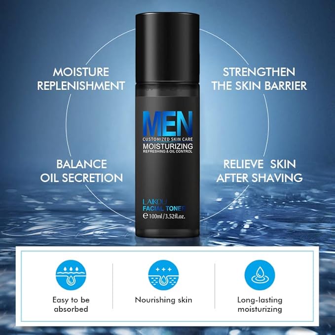 - 【Men Skin Care Set】LAIKOU men skin care set includes facial cleanser (6.35 oz), toner (3.52 fl oz), eye cream (0.71 oz), serum (1.01 fl oz) and moisturizing cream (5.29oz), which can meet the basic and comprehensive skin care needs of every man. It is very suitable as your skin care set or as a gift to others