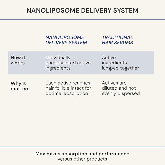 - Advanced 8-Peptide Complex – Designed by experts, peptides delivered through nanoliposomes help revitalize the scalp environment and visibly improve density, thickness, and overall hair strength over time.