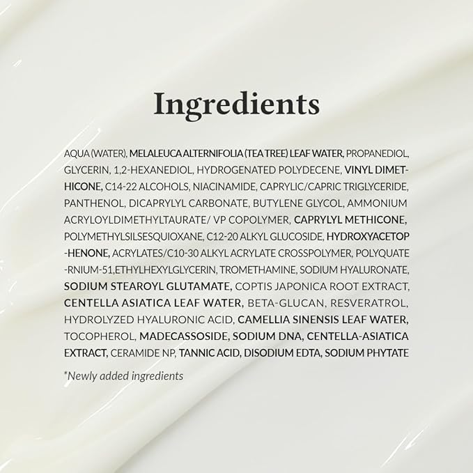 - 5 SOOTHING INGREDIENTS : Care for sensitive skin and red blemishes caused by external factors with Tea Tree Leaf Water and Madecassoside. These calming ingredients can quickly help soothe your skin effectively by providing moisture.