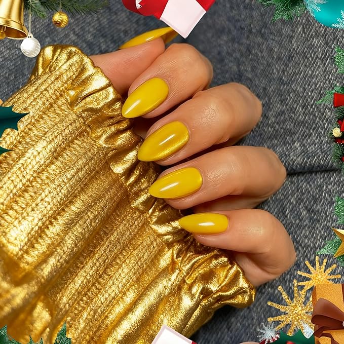 - Salon Quality Short Almond Nails at Home: Get professional-looking manicures in minutes. The glitter gold press on nails almond shape blend seamlessly with natural cuticles for a realistic finish that looks like a fresh gel mani from the salon