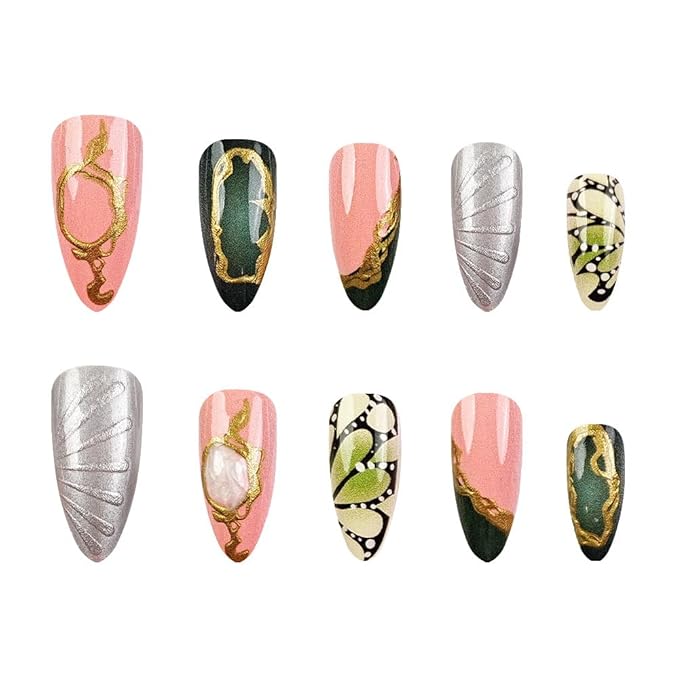 - Safe and Sturdy Design: Unique micro-thickening design to prevent 3D medium almond fake nails tips from cracking, Manual brush gel treatment on the nail surface, pattern printing is clear and not easy to fade, providing you with a safe and comfortable nail experience.