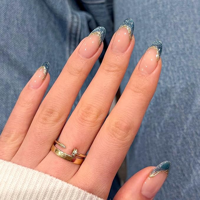 - Easy to Apply: Blue french tip stick on nails. Trim and clean your natural nails first,choose the right size and apply our nail tape,then press on the nails for 10 seconds. A few simple steps will make it easy for you to get the effect of doing a nail salon at home. When removing the press on nails, soak the nails in water for about a minutes to remove them more easily