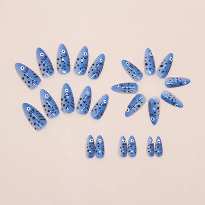 - Safe and Sturdy Design: Unique micro-thickening design to prevent fish medium almond fake nails tips from cracking, Manual brush gel treatment on the nail surface, pattern printing is clear and not easy to fade, providing you with a safe and comfortable nail experience.