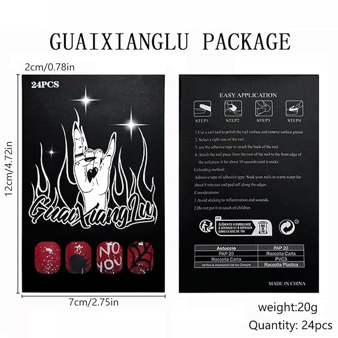 - Wonderful gift: Horror press on nails suitable for professional nail technician salon nail art designs, nail art lover DIY at home. These cute nail designs can make you stand out at dates, weddings, proms, and party so on. It can also be given as a gift to your sister, wife, family, girlfriend
