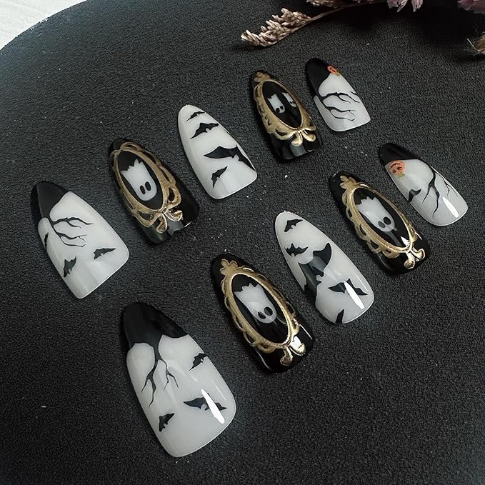 - Package Includes: Ghost press on nails kit, have 12 different sizes of nails, 24pcs fake nails, easy to make a fashion false nails salon