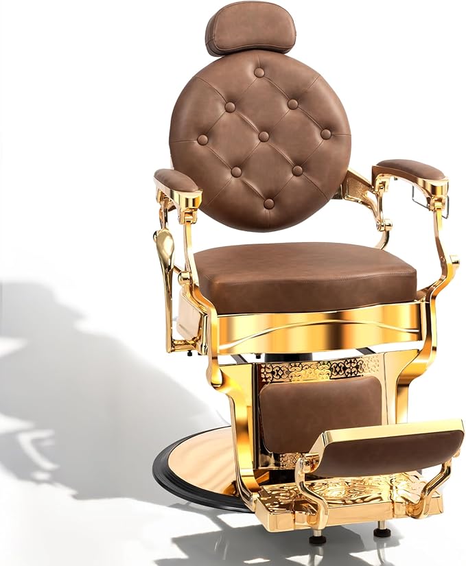 - Premium Construction: Crafted with high-quality PVC leather and high-density foam padding, this heavy duty barber chair supports up to 700 pounds. The gold-plated aluminum frame adds a touch of luxury while ensuring exceptional durability for your barbershop.