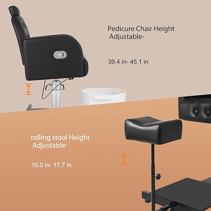 - 【High Quality Materials】 This pedicure chair is made out of PVC leather, made of high-density sponge material. The seat conforms to ergonomic design, providing perfect and comfortable support for the back. Deep seating depth and wide backrest accommodates every customer body, comfortable and stable.