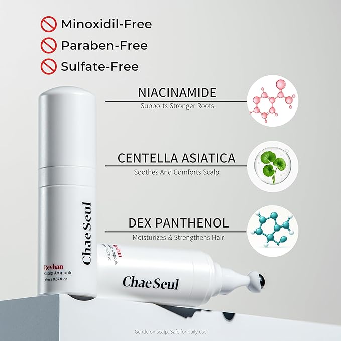 - MINOXIDIL, PARABEN & SULFATE-FREE – Free from minoxidil, parabens, sulfates, and silicones, this gentle scalp serum with Centella Asiatica, salicylic acid, panthenol, and niacinamide soothes sensitive scalps, strengthens roots, and supports visibly thicker, fuller, healthier-looking hair over time.