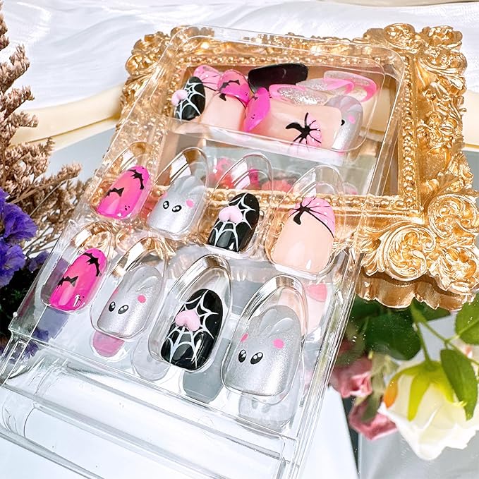 - Pumpkin Designs for Every Style: Featuring of bat patterns, these artificial nails add a touch of elegance to any look. Perfect for expressing your unique personality