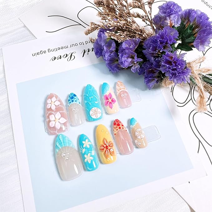 - Easy to Apply and Reusable: These summer fake nails are designed for quick and hassle-free application. Simply use the included adhesive tabs for a secure fit—no messy glue or tools required