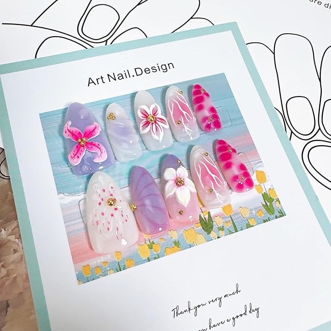 - Flower Kit for Nails: Each set includes 30pcs Almond press on nails medium, 24pcs adhesive nails tabs, 1 wooden stick, and 1 nail file. Everything you need for a salon-quality manicure at home