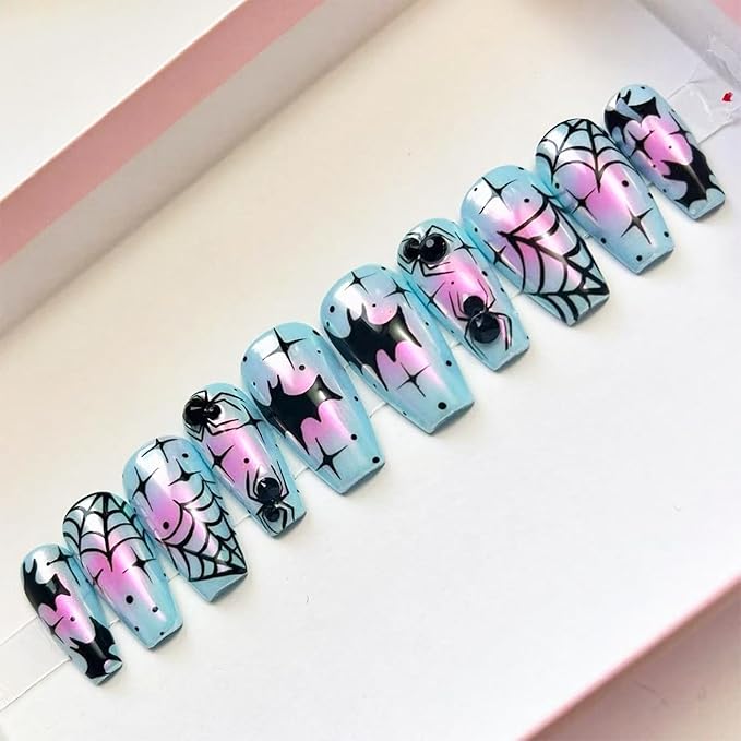- Spider Designs for Every Style: Featuring of bat patterns, these artificial nails add a touch of elegance to any look. Perfect for expressing your unique personality