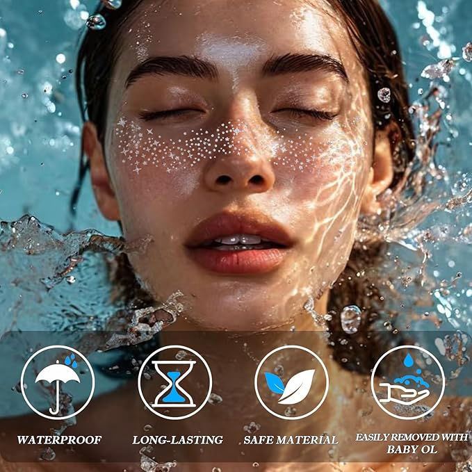 - 【Glitter Freckles】Crafted with hypoallergenic vegan adhesives and cosmetic-grade glitters