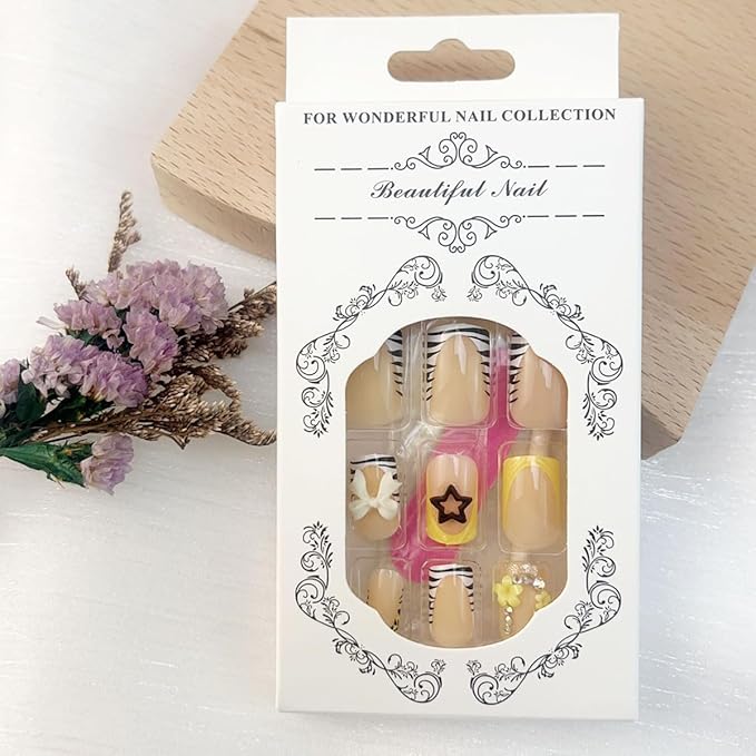 - Press on Nails:Short square press on nails combined rhinestone,zebra print, giving you beautiful nails and a different good mood
