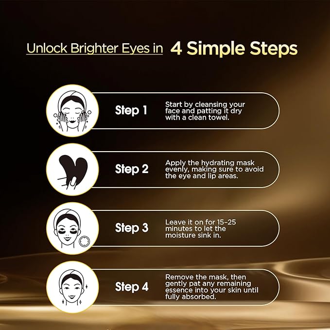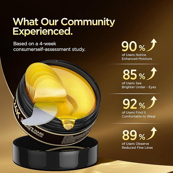 - Targets Multiple Eye Concerns:Blended with Gold, Caffeine, Acetyl Hexapeptide-8, and Hyaluronic Acid, these under eye patches visibly reduce dark circles, puffiness, fine lines, and under-eye sagging.