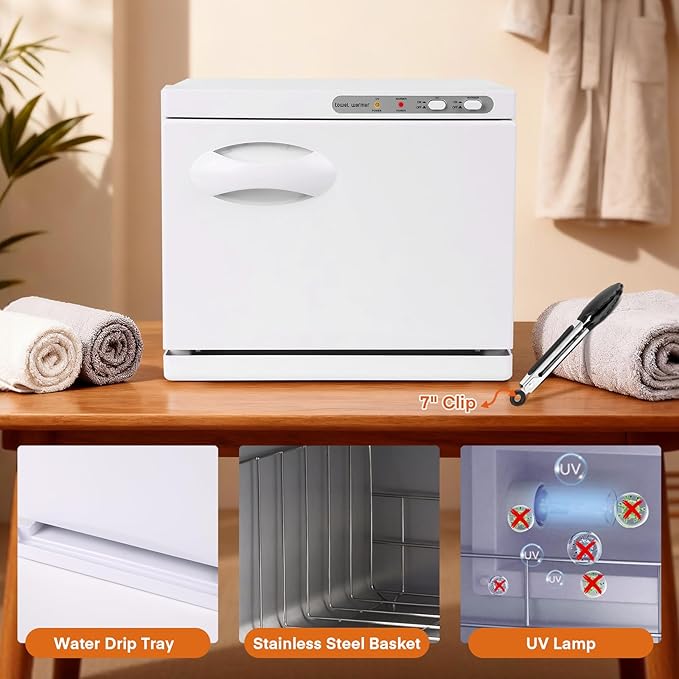 - Considerate Accessory: This professional towel warmer heating cabinet includes a 7 inch stainless steel clip to prevent burns from directly taking out towels with your hands, providing you with more convenience