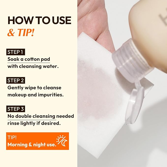 Mild But Deep Cleansing Water - Micellar Water Makeup Remover Oil Free Facial Cleanser for Sensitive Skin - Gently Exfoliates, Hydrates - Korean Skincare, 10.14 fl.oz.