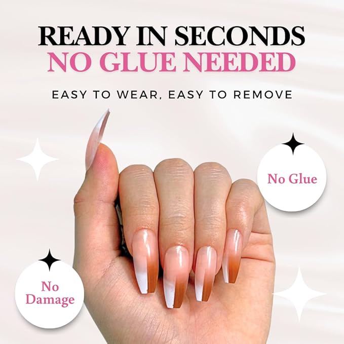 - NO GLUE, NO MESS, NO DAMAGE: No Damage: Say goodbye to painful removals and nail damage. Chemical-free adhesive tabs keep your nails secure and flawless all day without damaging your natural nails.