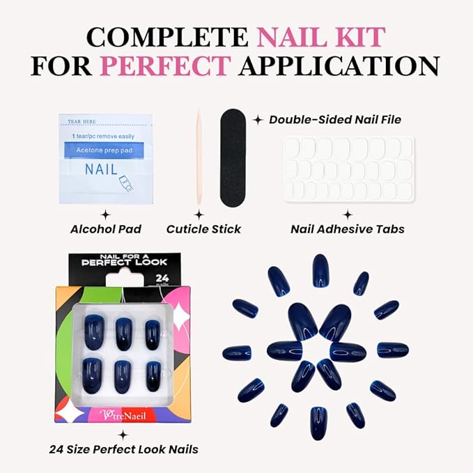- COMPLETE ALL-IN-ONE KIT: Everything you need for a professional-looking manicure, featuring 24 nails in 12 different sizes for your perfect custom fit. Includes adhesive tabs, a mini nail file, a manicure stick, and an alcohol prep pad. No extra purchases needed.