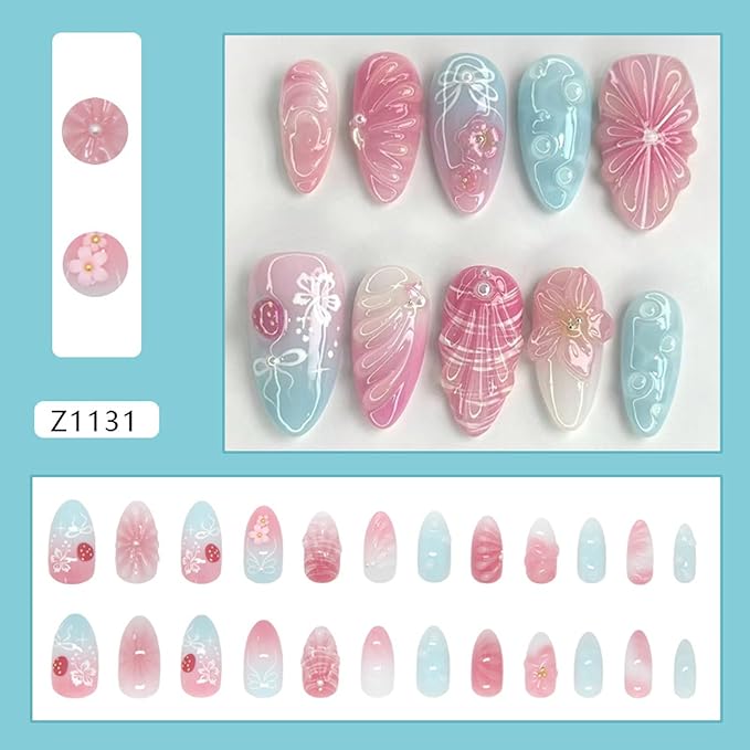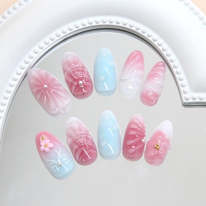 - Various Occasions: These pink blue 3d almond nail designs can make you stand out at parties, dates, weddings, proms, and Christmas. You can wear them on Prom, Party or any excellent occasion, nice gift for women and girls. It fits any DIY Nails Art, Family Day or prepare for dating.