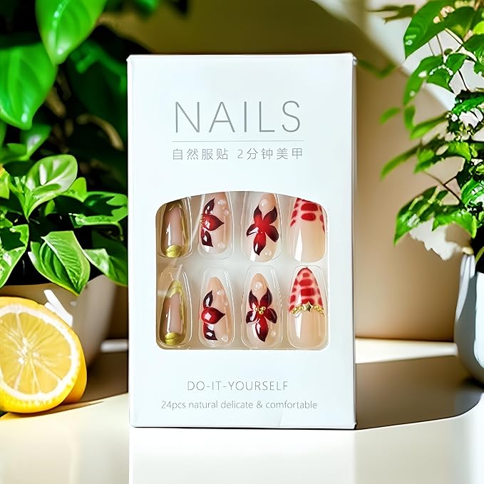- Package Contains:A box contains 24 red flower fake nails, a nail file and 24 jelly glues, an alcohol cotton pad,1 crystal stick,the fake nails are divided into 12 different sizes, it is convenient for you to choose the fake nails that suit your nail