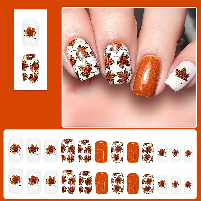 - Helps:If you have any questions about Thanksgiving day maple leaf acrylic press on nails, please feel free to contact us, we will respond to you as soon as possible and do our best to solve your problems