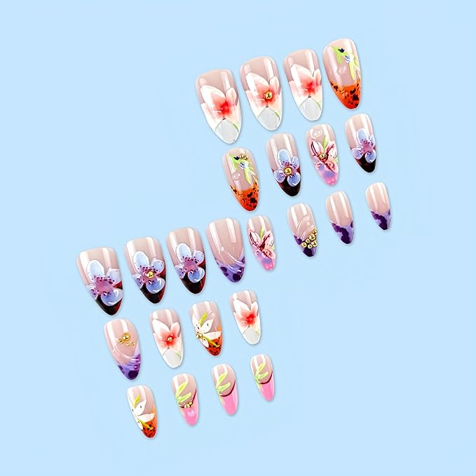 - Helps:If you have any questions about floral acrylic press on nails, please feel free to contact us, we will respond to you as soon as possible and do our best to solve your problems