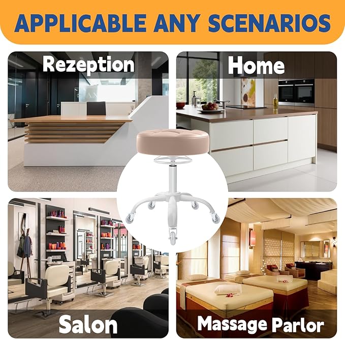 Rolling Stool Heavy Duty 400lb: Super Soft Seat Cushion,360° Swive,Height Adjustability,No Squeaky Noises,No Tip Over,New Upgraded stool Salon Stool Chair, Tattoo Facial Massage Spa Medical(Beige)