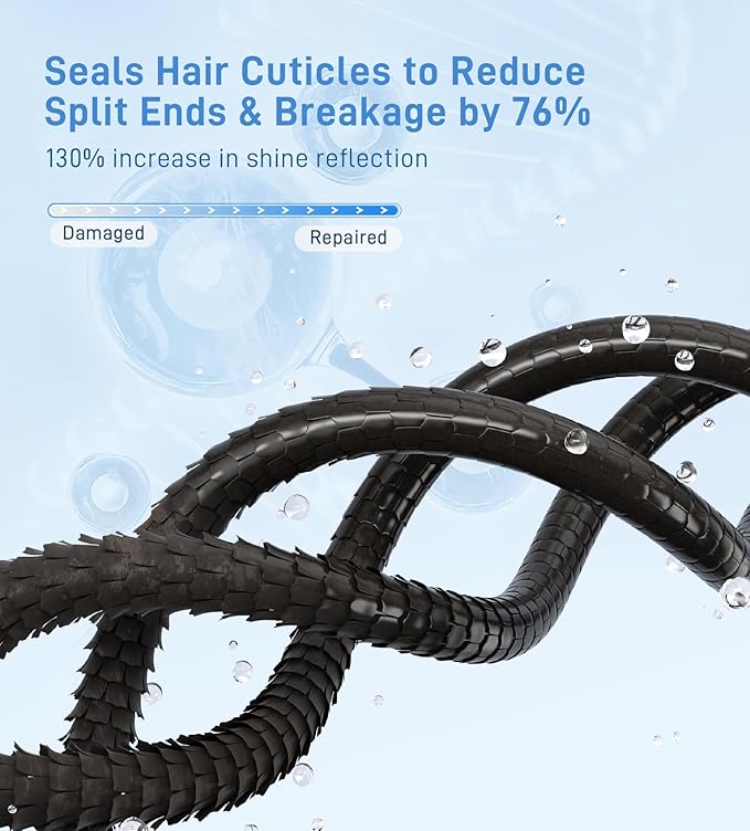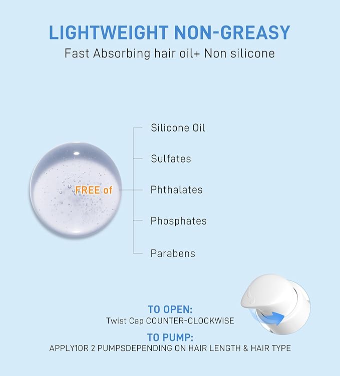 - Deep Moisturizing & Hydration for Dry & Damaged Hair: With Hyaluronic Acid derivatives and collagen, this oil deeply moisturizes and hydrates dry and brittle hair. It helps to restore moisture balance, prevent split ends, and leave hair feeling soft, hydrated, and nourished from root to tip.