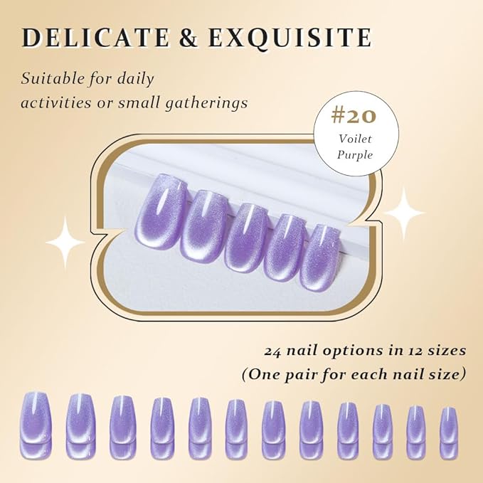 - 【Cat Eye Design】Each nail has a reflective, deep shimmering effect that changes as light hits it, giving a stunning multidimensional look that stands out without being overly flashy. It's a sophisticated style that blends boldness and elegance effortlessly