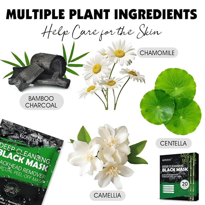 - 【Suitable for Most Skin Types】Whether you have normal or oily skin,use our blackhead remover mask 1-2 times a week,apply the black face mask evenly to your face or nose,leave it on for 15-20 minutes each time,then slowly peel it off from the edges,this will effectively remove blackheads and tighten pores