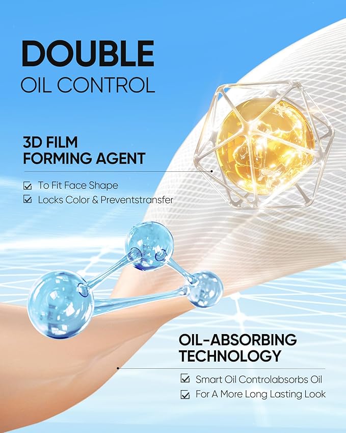 - [PERFECT FOR OILY & COMBINATION SKIN] This Oil free foundation features intelligent oil-control technology, it absorbs excess sebum to keep skin shine-free while maintaining hydration. Ideal for oily or combination skin, ensuring your makeup stays matte and fresh all day.