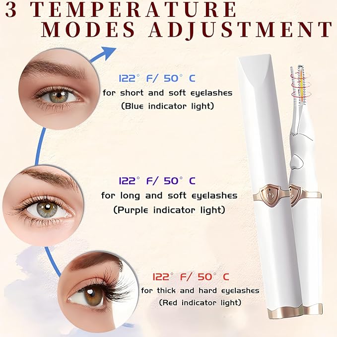- 【Usage Tips】🔋 First Use: Fully charge for 1-2 hours. Practice the operation technique before formal use. ✨ Curling Hack: Lightly apply mascara before curling to boost heat setting. Reapply after curling for a natural, long-lasting lift