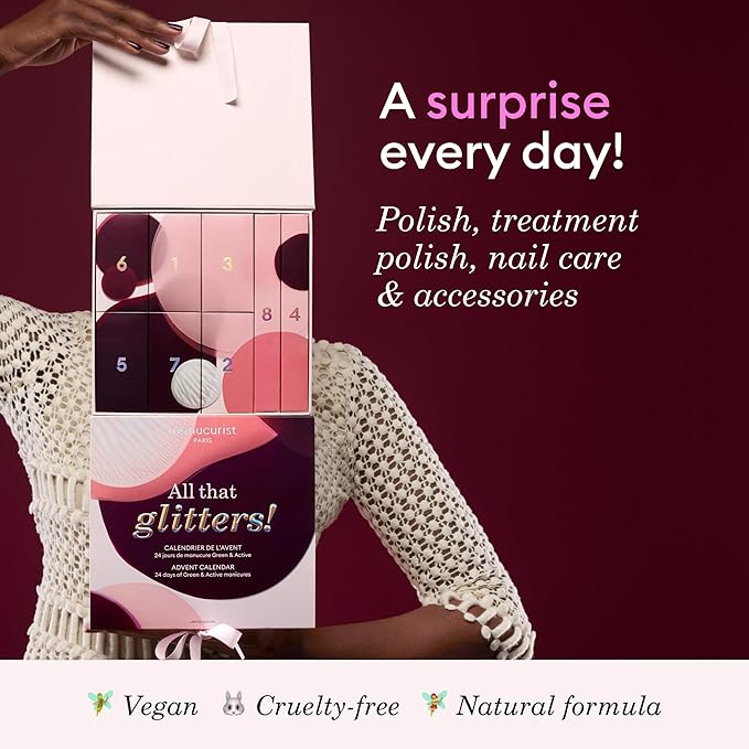 - Advent Calendar for Adults : All That Glitters! An iconic selection of 24 FULL SIZED products, including 1 limited edition product, to care for your nails and beautify them just in time for the holidays. Every day, discover a new surprise from our Active, Green, nail care, or accessories collections! Advent Calendars exclusive: New Glitter Top Coat