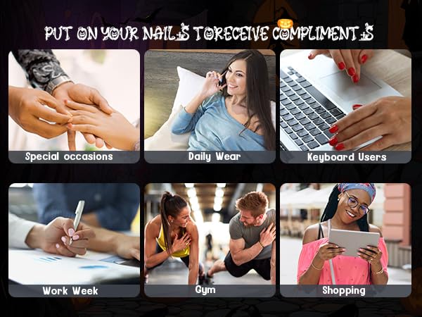 - Suitable for What You Usually Do: Our halloween fake nails offer a protective building gel finish, so you can do everything you normally would without worrying about them budging. Perfect for nails salon, DIY home nails art, weddings, prom, dating, and other social occasions