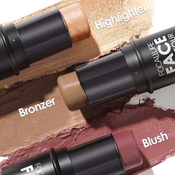 - 3-in-1 Contour Kit for Effortless Glow : FOCALLURE’s cream contour stick set includes highlighter, bronzer & blush for a complete face sculpting routine. Achieve a fresh-faced, luminous look with buildable, blendable shades that enhance your natural features—perfect for quick, on-the-go makeup.