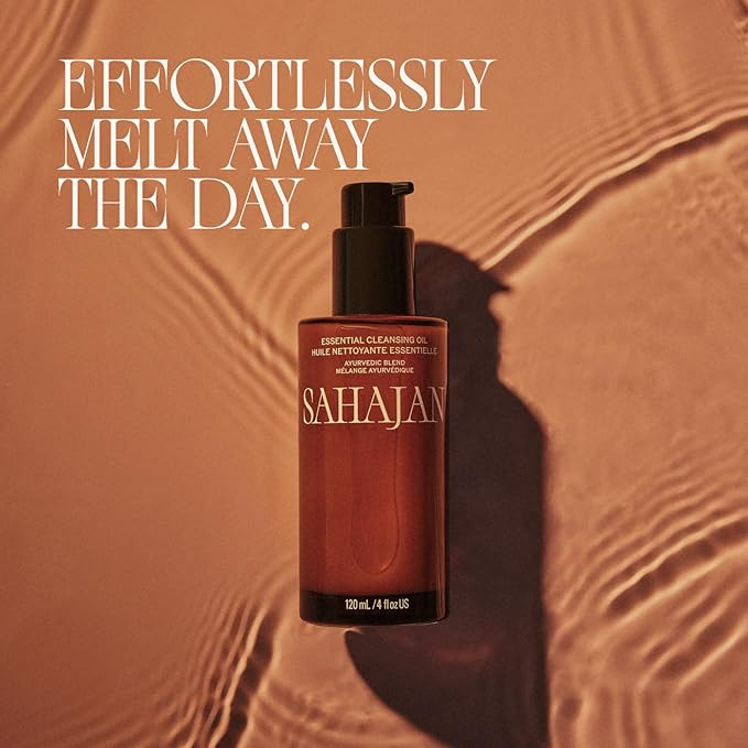 Sahajan Essential Cleansing Oil with Vitamin C + Squalane | Ayurvedic Gentle Clean Facial Cleansing Oil | All Skin Types, Sensitive Eyes | Remove Waterproof Makeup, SPF, Pollution | 4 oz